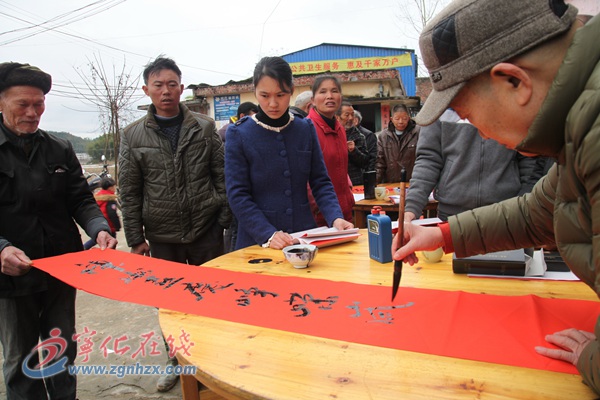 ??? 1月30日,寧化縣中沙鄉(xiāng)樓家村人頭攢動,笑臉盈盈,由縣委宣傳部組織的多名書法家來到這個庫區(qū)移民村,為村民現(xiàn)場書寫春聯(lián)。移民群眾手拿紅彤彤的春聯(lián),興奮之情溢于言表。