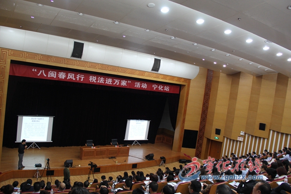 ? ? 4月14日上午,由省國稅局、省地稅局聯合主辦的“八閩春風行 稅法進萬家”活動走進寧化,300余名寧化企業納稅人代表和縣國、地稅干部在世客中心學術報告廳參加培訓。