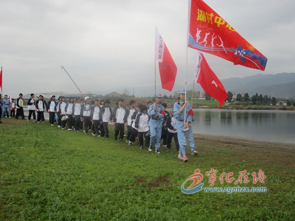 ? ? 為紀念紅軍長征勝利80周年,4月14日,寧化湖村中心學校初中部226名師生,高舉鮮艷旗幟,一路浩浩蕩蕩沿著當年紅軍走過的路線,徒步往返20余公里,開展“重走長征路 緬懷革命先烈”系列活動。