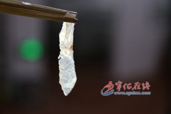 切片最為關鍵,最能考驗刀工。鐘成富手握片刀,快速前后推拉,一片片薄如蟬翼的生魚片便切出來了。鐘成富說,速度快的時候,從殺魚到魚片上桌,魚嘴還會動。