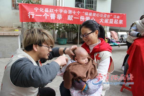 ??? 短短一個小時,志愿者們為老人們換了個發型,為小寶貝們剃好了滿月頭,讓他們以嶄新面貌迎接新年??h紅十字會還給每位老人準備了新年禮物——精心制作的小蛋糕,志愿者把禮物親手送到老人們的手里,送上新年的祝福。