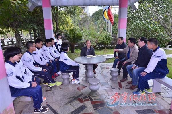 ??? 寧化一中校長伊永河像往年一樣,陪同85屆高三(1)班校友代表與同學們在校園長廊旁的亭子座談。幾位校友很自然地詢問了同學們最近在生活和學習上的情況, 并回顧了自己在一中的成長經歷,與同學們展開了熱烈的交流。雖然85屆校友早已是超出了同學們父輩年齡的長輩們,但他們之間完全沒有代溝,他們在一起交談的畫面毫無違和感。同學們笑靨如花,老校友親切如常,同學們很自然地同老校友講學習困惑、講生活困難、談人生理想。