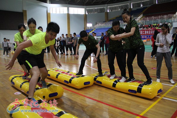 ??? 在同舟共濟接力賽中,6名運動員分成兩組,先由3名運動員站上氣墊,踩著兩塊氣墊交替前進,齊心協力以最快速度向終點奔跑,然后再由另外3名運動員接力下去。公安局工會代表隊是第一組出賽,運動員們矯健的身姿,活躍的表現瞬間吸引了大家的注意力,當其中一名隊員掉落在地,只能回到起點重新比賽時,現場觀眾紛紛為其感到可惜。
