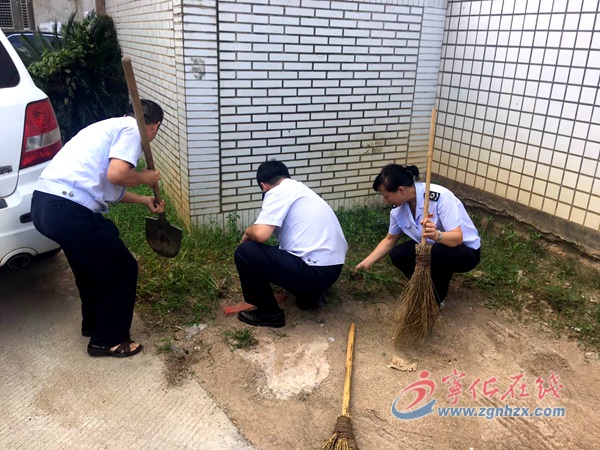 8月25日,寧化縣地稅局的干部職工來到責任區,將責任區域內的的雜物和落葉清掃干凈,并向過往居民進行文明知識宣傳,倡導大家自覺愛護環境,養成良好的衛生習慣,共建文明城市。?