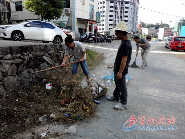 縣委文明辦工作人員清理沿路雜草、垃圾