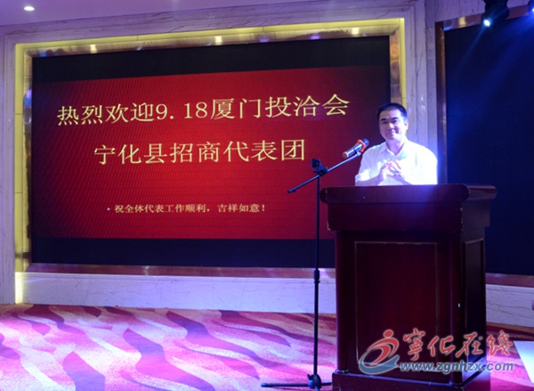 招商推介會上,姚文輝致辭,簡要介紹寧化縣情以及優良的創業環境,誠摯邀請各界客商到寧化觀光考察、投資興業。