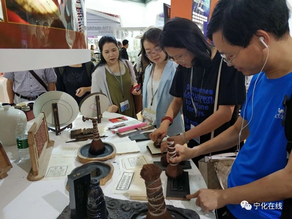 ▲前來觀展的深圳市民朋友紛紛來到寧化木活字印刷展臺前體驗這古老傳統(tǒng)技藝。