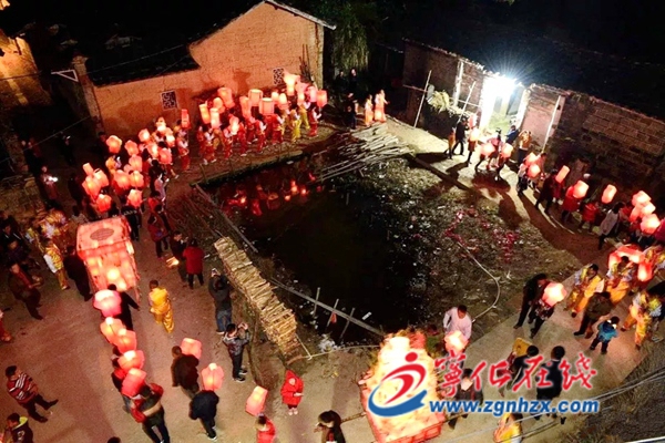 如今,每年正月初七,延祥村會舉辦一場喜慶的花燈會。當晚,夜幕降臨,花燈被逐一點燃,廳堂院落人頭攢動。參加燈會的男女老幼或拎著或舉著自家扎制的各具形態的花燈,從四面八方涌來,匯聚成了一支浩浩蕩蕩的燈龍。起燈了,伴著陣陣喧天的鼓樂聲,寫有“六畜興旺”“風調雨順”等美好祝辭的各式彩燈蜿蜒游向村道,穿行于青石古巷中,猶如一條披著節日盛裝的長龍。花燈隊伍所到之處,爆竹聲聲,禮花陣陣,把夜空點綴得如同白晝,小村莊沸騰了。當長龍游至楊氏祠堂穿越古街時,花燈會達到高潮。