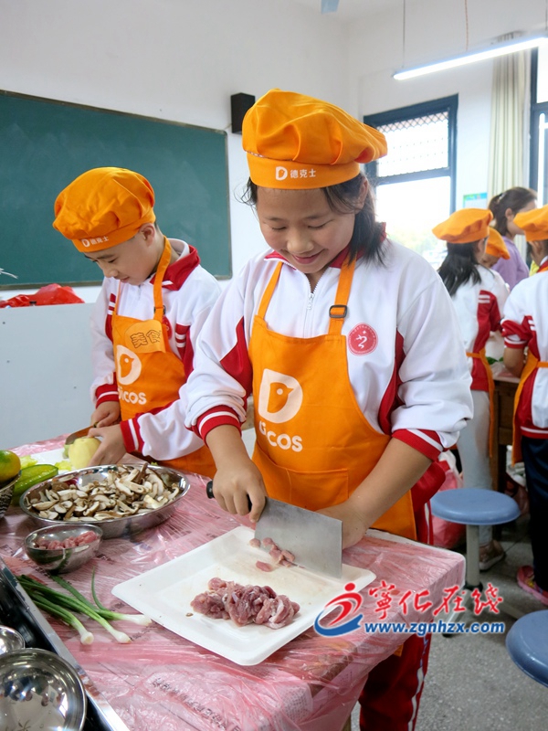 ? ? 10月10日,寧化縣實驗小學廚藝家長講壇活動啟動。55名五年級學生在家長們的指導下,親身體驗做菜的樂趣。