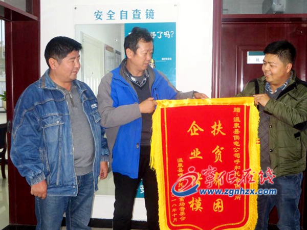 呼和托哈鄉(xiāng)種畜場的牧民送來錦旗