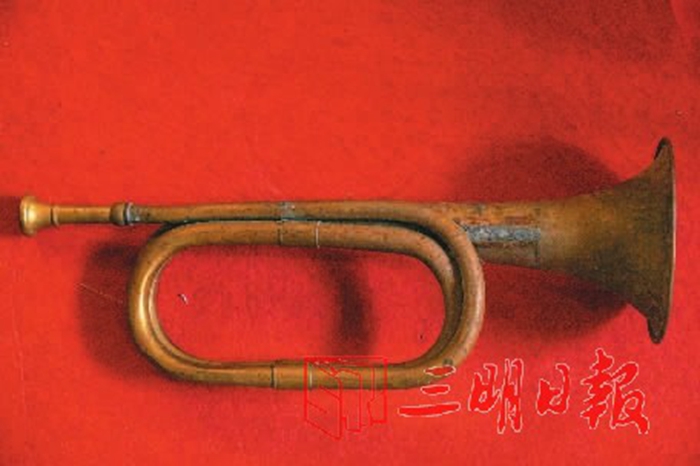 寧化縣泉上鎮東方軍指揮部舊址陳列室里展示的舊軍號。(本報記者 林文斌 攝)