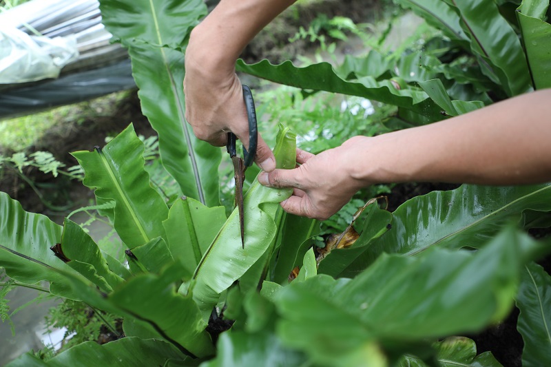 山蘇的需光性不高,較耐旱,但忌水泡,怕霜雪。2017年年底,一場突如其來的霜凍,將基地里五分之一的山蘇活活凍死、枯萎。