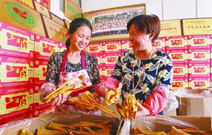 ? ? 村婦聯(lián)主席張小霞是一名“90后”,大學(xué)畢業(yè)返鄉(xiāng)創(chuàng)業(yè),2018年成為全村婦女的領(lǐng)頭雁后,她帶頭創(chuàng)建婦字號(hào)“閩西土八路”電商平臺(tái)和團(tuán)結(jié)薏米合作社,按照市場(chǎng)指導(dǎo)價(jià)收購(gòu)村里的花生、豆腐皮、手工粉干、紅菇、薏米等農(nóng)特產(chǎn)品,再進(jìn)行加工和包裝,為全村農(nóng)特產(chǎn)品打通了銷售渠道。與此同時(shí),合作社還為留守婦女提供了靈活的就業(yè)崗位,為貧困婦女搭建了致富平臺(tái)。張小霞因此被鄉(xiāng)親們親切地稱為“電商玫瑰”。