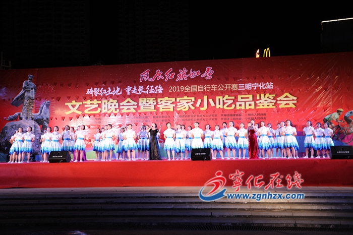 ? ? 9月21日晚,“騎聚紅土地·重走長征路”2019年全國自行車公開賽三明寧化站——“風展紅旗如畫”文藝晚會和客家小吃品鑒會在市民休閑廣場盛大舉行。大家歡聚一堂,共賞精彩節(jié)目,同品美味小吃。