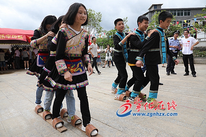 治平畬族鄉(xiāng)是三明市兩個(gè)少數(shù)民族鄉(xiāng)之一,盛產(chǎn)毛竹。高腳競(jìng)速、板鞋競(jìng)速項(xiàng)目是這個(gè)畬鄉(xiāng)學(xué)校展示民族文化風(fēng)采的重點(diǎn)項(xiàng)目。學(xué)生及家長(zhǎng)就地取材,用當(dāng)?shù)氐闹衲具吔橇现谱骱?jiǎn)單運(yùn)動(dòng)器材用于訓(xùn)練比賽。高腳又名竹馬,當(dāng)?shù)禺屆耠S手砍下兩根粗壯的青竹竿,每根留下一節(jié)竹枝杈,再用棕繩綁制兩個(gè)腳蹬,一副竹馬就做成了。