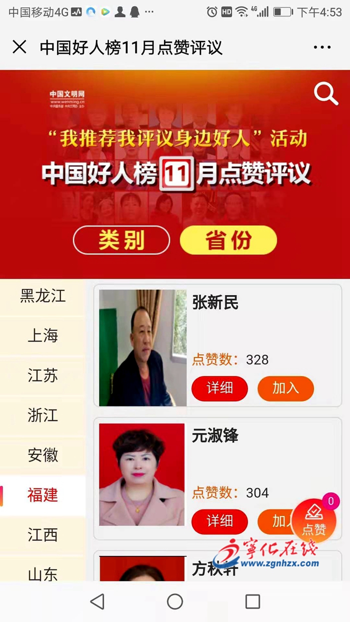 寧化張新民入圍11月“中國好人榜”,快來幫他投票