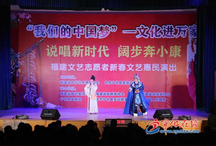 1月6日晚,“我們的中國夢”——文化進(jìn)萬家福建文藝志愿者新春文藝惠民演出在寧化縣安遠(yuǎn)鎮(zhèn)文化禮堂舉行,為當(dāng)?shù)厝罕妿硪粓鲐S富多彩的文藝晚會。
