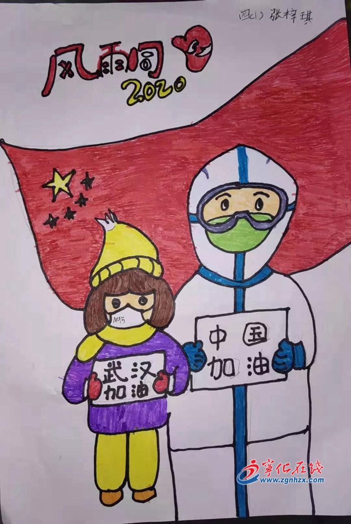 寧化:小學生創作防疫繪畫作品為武漢加油