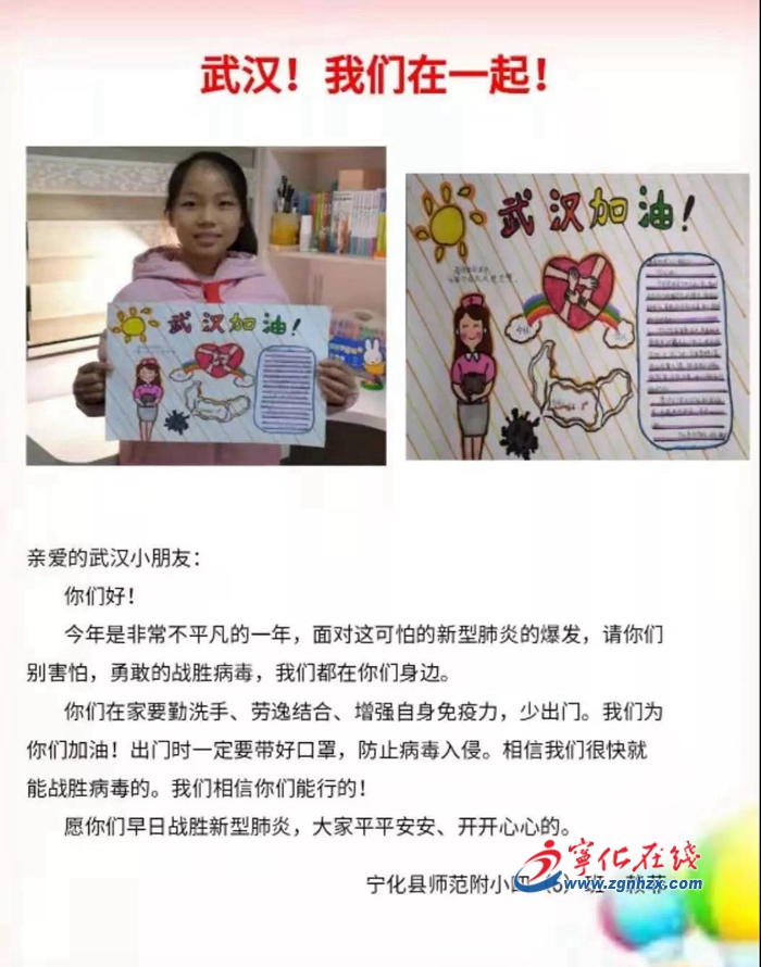 寧化:小學生創作防疫繪畫作品為武漢加油