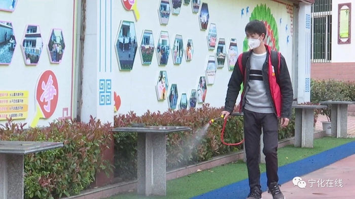 寧化縣中小學校紛紛組織團員教師志愿者對校園及周邊場所進行集中消殺和打掃,筑牢校園“防疫墻”。