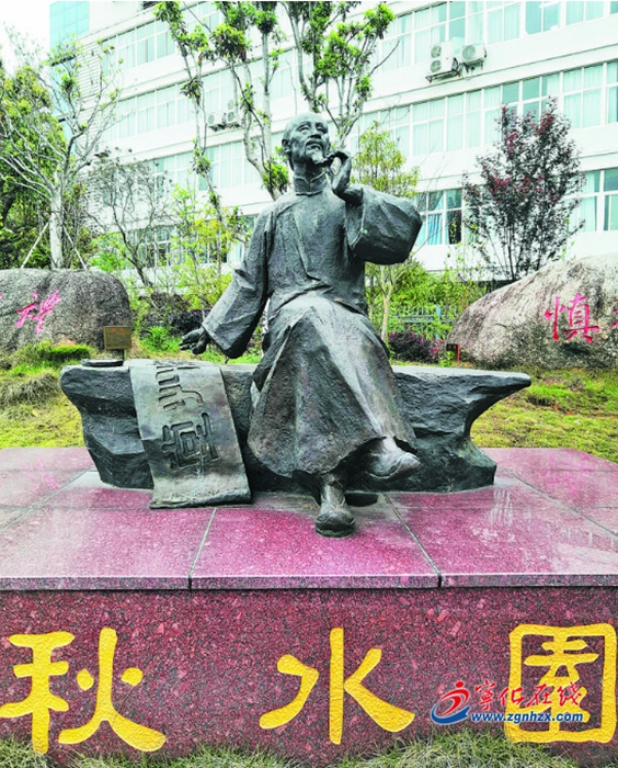 長期以來,寧化人知道墨庵先生有秋水園,但大多數人止于此而已。有關秋水園,民國版《寧化縣志》園林第宅部分的記載非常簡陋:“在縣治之東,城隍右。嘉慶間,進士伊秉綬建。嘗讀書于此,今廢。”地理位置也說得不夠具體,所謂“城隍右”之“右”是一個相對的概念,所幸,根據古人風水學理念和伊襄甲《秋水園記》中“邑志所謂南山倒影者,今無影矣,而北山入焉”記載可知,秋水園的位置大致為今寧化一中操場。根據此線索,2017年,伊氏九世族孫伊士哲于此立伊秉綬銅像一尊,基座標“秋水園”字樣。