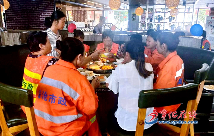 5月10日,寧化客家美食城內的重慶德莊火鍋店邀請了130余名環衛女工到店里免費吃火鍋,共度母親節。這是該店連續第六年邀請環衛女工前來過母親節。
