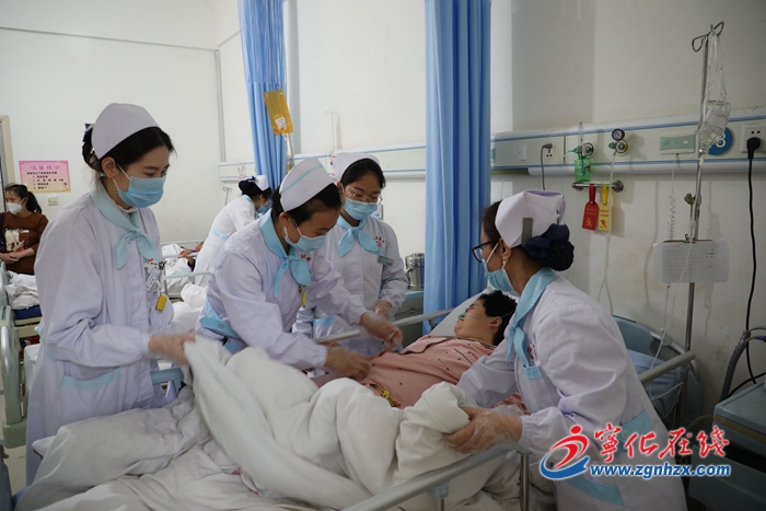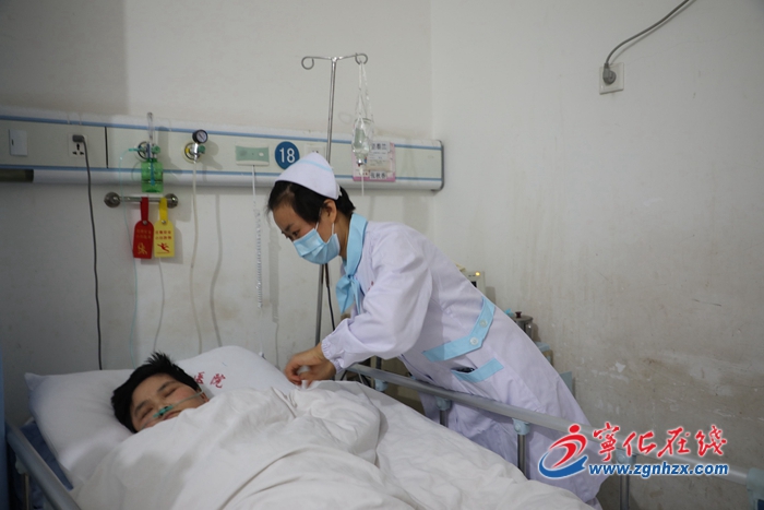 5月10日,寧化縣總醫(yī)院六樓住院部內(nèi),護士張燕玲正在各個病房來回穿梭,換藥打針,并耐心傾聽患者及家屬的問題。