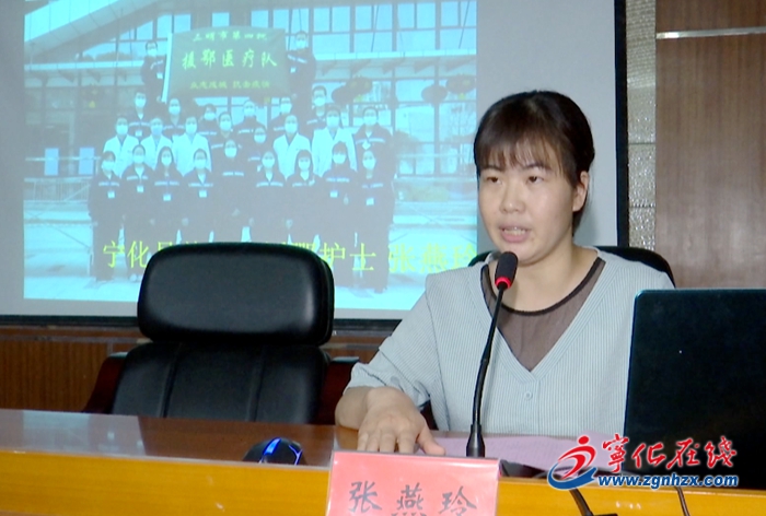 報告會上,三明市第二批援鄂醫療隊隊員、縣總醫院內二科護士長張秋香和三明市第四批支援湖北醫療隊隊員、縣總醫院重癥醫學科護士張燕玲分別作了《一線抗疫踐初心》《逆行戰疫,不辱使命》的宣講報告,向大家分享了一線抗“疫”故事,為大家呈現了一幕幕感動畫面、一個個感人瞬間。她們用實際行動詮釋了新時代醫務工作者“敬佑生命、救死扶傷、甘于奉獻、大愛無疆”的精神,也展現了“最美逆行者”踐行初心使命的責任和擔當。