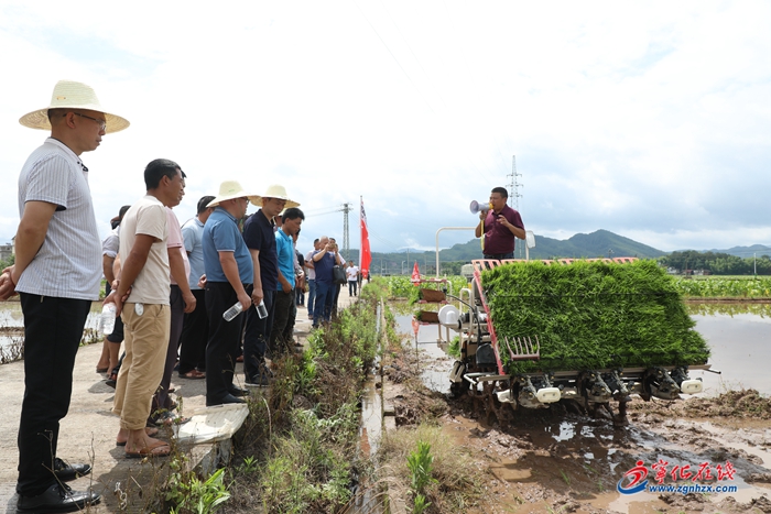 6月2日,寧化縣在石壁鎮禾口村舉辦水稻生產全程機械化現場會,進行高速插秧機、履式旋耕機、筑埂機等農機推廣演示,吸引了農機專業合作社社員、種糧大戶等近百人到場觀摩。