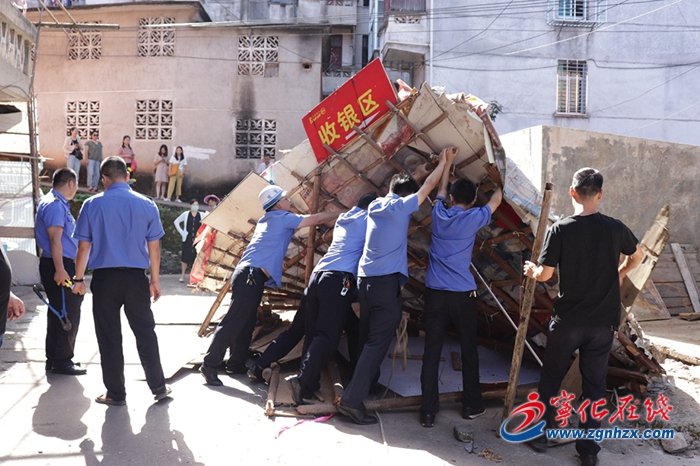 6月17日,寧化縣城市經營公司聯合縣城市管理局、翠江鎮人民政府、北山社區工作人員拆除北山一路公房公共通道內的違建雜物間8間,釋放公共空間約200平方米。
