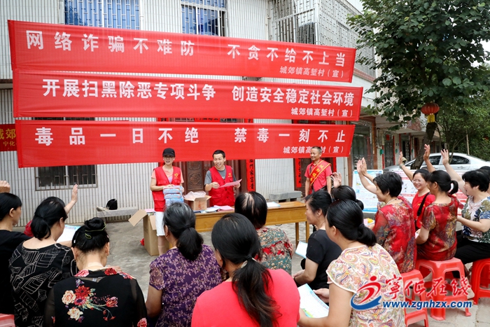 志愿者通過設(shè)置展板、懸掛橫幅、發(fā)放宣傳資料等方式,向村民宣傳掃黑除惡專項斗爭、禁毒、防范網(wǎng)絡(luò)電信詐騙、平安“三率”等相關(guān)知識。普法宣傳員向村民講解《禁毒法》《交通安全法》《社區(qū)矯正法》等法律知識,接受村民的咨詢。現(xiàn)場還設(shè)有抽獎、知識搶答、包粽子等趣味活動,吸引村民參加活動,進一步提升了群眾對平安建設(shè)的知曉率。本次活動累計發(fā)放宣傳單400余份,接受現(xiàn)場群眾咨詢20余人次,取得了良好的宣傳效果。活動結(jié)束后,志愿將包好的粽子送給城郊鎮(zhèn)敬老院,讓老人進一步感覺到社會的愛心與溫暖。