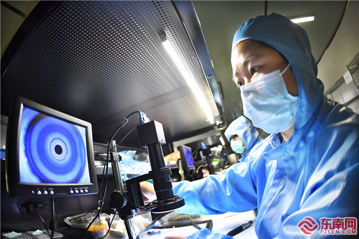 近年來,寧化縣出臺相關政策鼓勵企業技術改造、升級,提高市場競爭力。圖為12日,位于寧化華僑經濟開發區的三明福特科光電有限公司車間內,技術員在研發光學鏡片。今年,該公司投資5000萬元進行銑磨、拋光、磨邊等生產線自動化改造,使鏡片制造逐步實現自動化、智能化和物聯化。據悉,該公司光學鏡片生產規模為全國最大。 福建日報記者 林輝 通訊員 劉才恒 攝