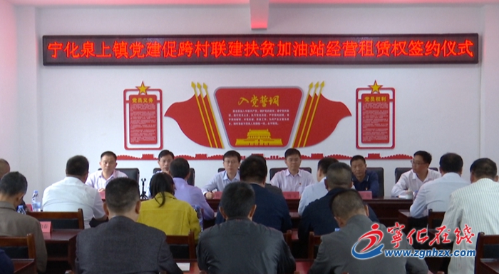 10月17日是我國第7個“扶貧日”,寧化泉上鎮在羅李村舉行黨建促跨村聯建扶貧加油站項目經營權租賃簽約儀式。中石化三明分公司總經理王增宇、副縣長陳明朗參加簽約儀式。