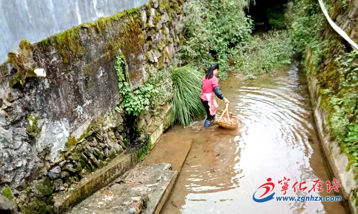 10月20日,在寧化縣治平畬族鄉田畬村貓竹岌河段,一個身影正在清理河道中的垃圾。她一手拿鐮刀、一手拿簸箕,時不時地用鐮刀勾起河道中的垃圾往簸箕中裝。這人正是田畬村河道專管員曾春栳的妻子曾騰秀。