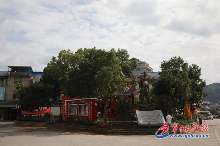 泉上鎮(zhèn)街心公園塑有軍號(hào)手和號(hào)譜雕像?