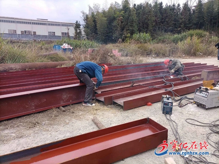 12月10日,寧化縣湖村鎮集鎮農貿市場改造項目現場,工人們正在拆除舊棚、鋼柱、混凝土臺面,電焊新鋼柱、雨棚等。