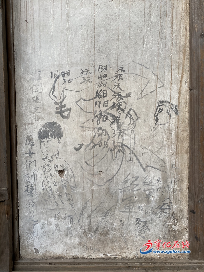 該舊址正在修繕保護,原來堆滿雜物的左右廂房清理干凈后,5幅標語漫畫也浮現出來。這幾幅紅軍標語表現形式獨特,圖文并茂,內容也結合了當地實際。如一幅漫畫標語:一頭水牛在水邊吃草,不遠處一條小船,文字寫著:“打倒蔣介死(石);擁護共產黨;為紅……”還有一幅漫畫標語:一個大大的空心字“家”,“家”的右邊畫著一男子和一小孩,左邊畫著一女子,剪了短發,旁邊寫著:“婦女們割髻放足;男女平等;擁護共產黨……”
