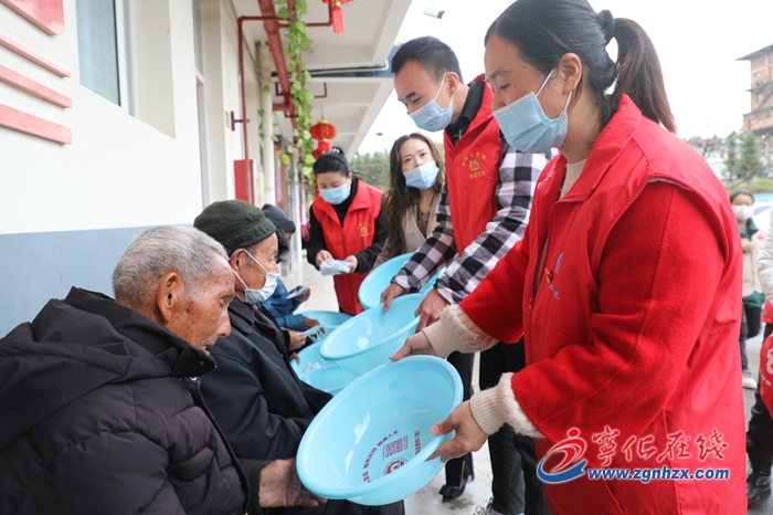 2月26日,寧化縣紅十字會、城郊鎮婦聯聯合開展 “愛心元宵節送溫暖”活動。工作人員帶領愛心志愿者走進城郊鎮幸福家園,向30多名孤寡老人送上熱騰騰的漢堡和節日慰問品,并為老人表演舞龍等文藝節目,與老人一起包水餃、燒麥,共進豐盛的午餐。城郊鎮衛生院醫護人員還向老人發放口罩和臉盆,講解口罩正確戴法及老年人健康保健知識,讓老人度過一個難忘又溫暖的元宵節。(記者 賴全平 羅健雄 任振宇)