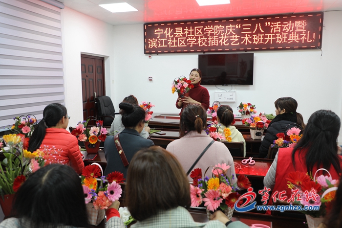 3月6日晚,寧化城郊鎮(zhèn)濱江社區(qū)學(xué)校舉辦插花藝術(shù)班開班典禮,喜迎“三八”婦女節(jié)。