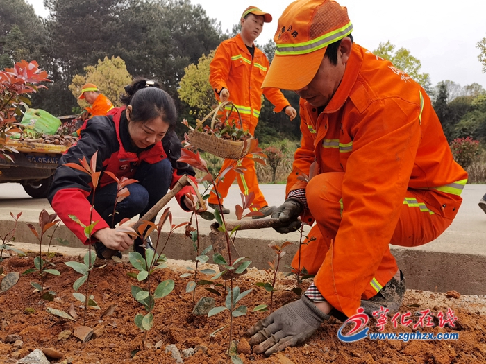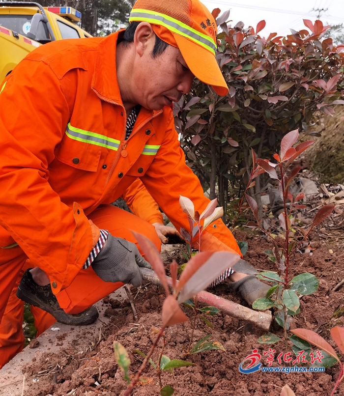 黨員志愿者們與養護人員一道,前往省307線蓮塘工業園路段,對公路兩側綠化進行補植補種。大家揮鍬鏟土,種苗回填,沿著路邊空地栽植了近百平米紅葉石楠地被。