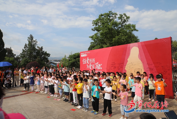 當天上午,北山公園一片歡騰,志愿者引導孩子們在主題展布上簽字,并寫下送給媽媽的心里話和祝福。紅黃藍幼兒園的孩子齊聲演唱《世上只有媽媽好》,表演手語歌《聽我說,謝謝你》。