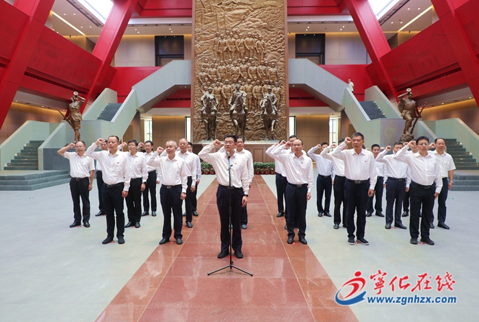 會后,縣副處級以上黨員領導干部來到寧化縣革命紀念館(長征館)開展重溫入黨誓詞活動,王勝文、吳茂生等縣領導面向鮮紅的中國共產黨黨旗,重溫入黨誓詞。隨后縣領導參觀了寧化縣革命紀念館(長征館)。