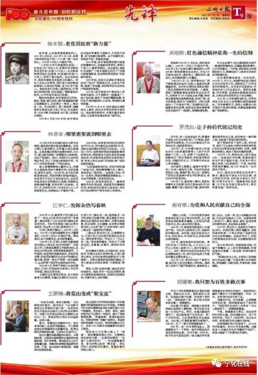 7月1日,《三明日?qǐng)?bào)》T9版刊發(fā)了《羅茂如:讓子孫后代銘記歷史》,講述了寧化老黨員、老游擊隊(duì)員羅茂如的故事。