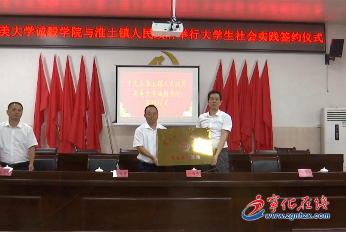 7月13日,集美大學誠毅學院商船系與寧化縣淮土鎮舉行大學生社會實踐基地簽約儀式,就進一步強化政校合作進行洽談溝通。
