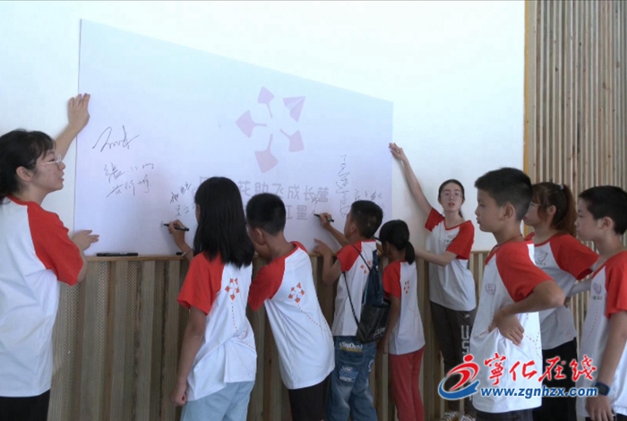 7月17日,鳳凰花助飛“寧化小紅星”成長營在寧化曹坊鎮坪上村幸福院舉辦開營儀式。縣教育局及曹坊鎮相關負責人,集美大學帶隊老師、大學生志愿者和全體營員參加開營式。