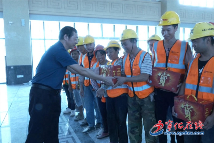 慰問組一行深入中鐵24局寧化站房、縣環衛站等企業或 單位的施工作業現場,向一線高溫作業人員發放礦泉水、菊花茶、王老吉、綠豆等防暑降溫物品。