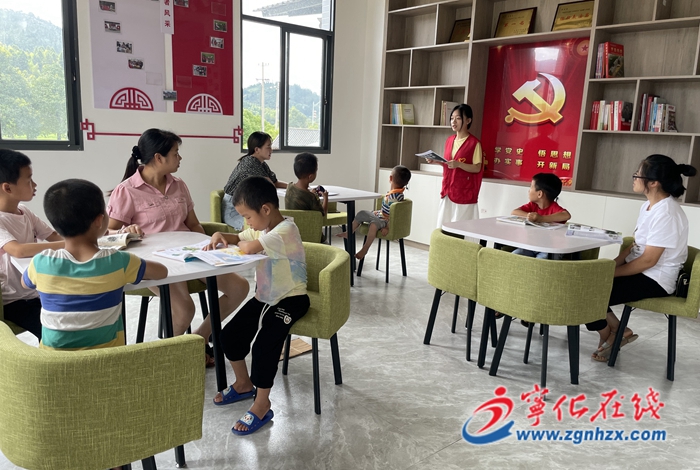志愿者們先在閱覽室組織了一場讀書會,隨后開展防溺水宣傳和疫苗接種宣講。同時幫助家長們操作激活電子醫保,介紹電子醫保的使用方法。