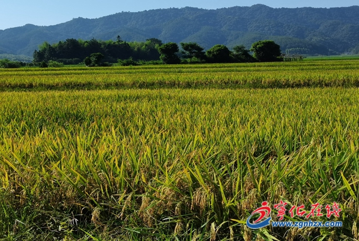 站在田野上,一眼望不到邊的金黃稻谷,猶如一片金色的海洋。水稻收割機在稻田中來回穿梭,收割、脫粒、裝車,現場一派忙碌的豐收景象。