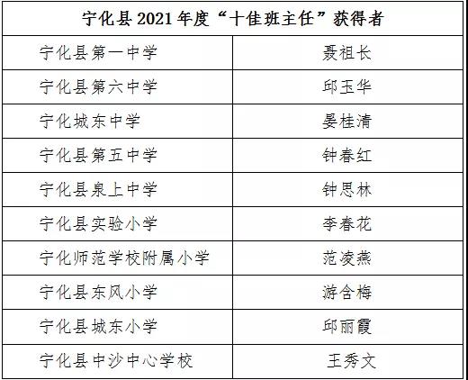 近年來,寧化縣教育系統廣大教師和教育工作者不忘初心、牢記使命,落實立德樹人根本任務,努力培養德智體美勞全面發展的社會主義建設者和接班人,在工作中,涌現出了一批立足崗位、敢于創新、勇于實踐、實績突出的先進模范人物,為推動我縣教育發展、辦好人民滿意教育作出了突出貢獻。今年,寧化縣共評選出10位縣“十佳教師”和10位縣“十佳班主任”,進一步激勵廣大教師爭做“四有”好老師,塑造新時代人民教師新形象。