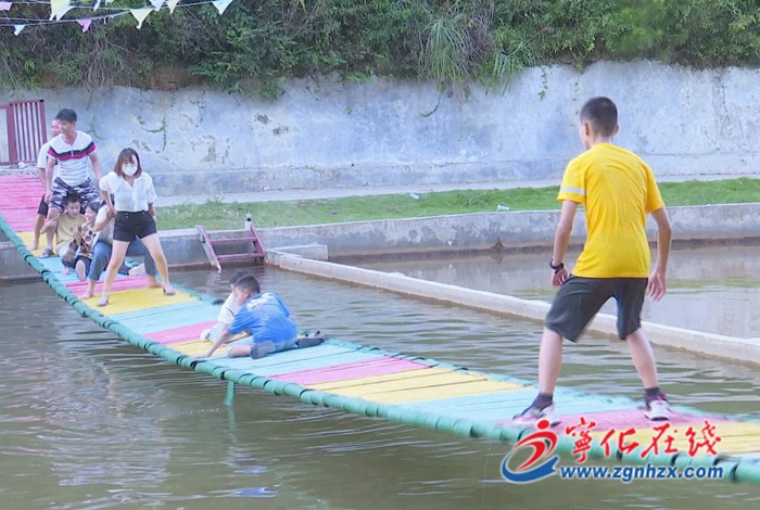 除了欣賞自然美景,這里各種特色活動也豐富多彩。在網紅橋上,大家分成兩邊,左右搖擺,一不留神就容易落入水中,真是驚險又刺激。“剛走上去的時候,感覺會掉下來,走到中間的時候,就發現他們趴在那邊,我就很想把他們搖下去,結果把自己搖下去了。”一名游客說道。